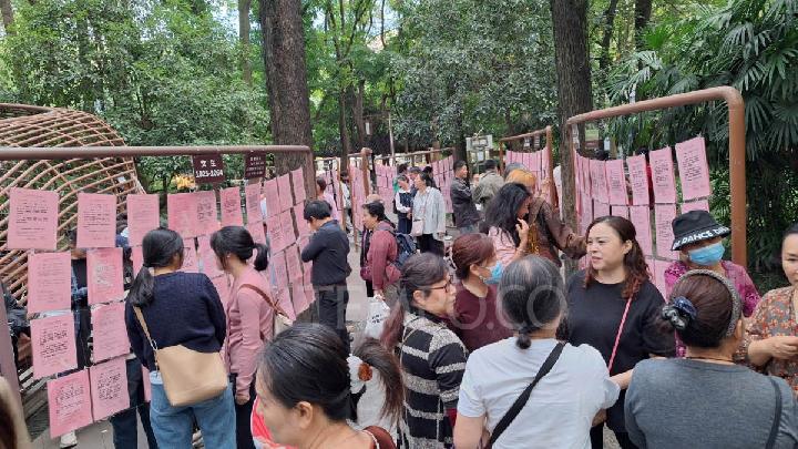On another side of People’s Park, there is a unique ‘matchmaking corner.’ Here, parents display papers containing their children’s biodata, such as age, occupation, income, contact numbers, and specific preferences.